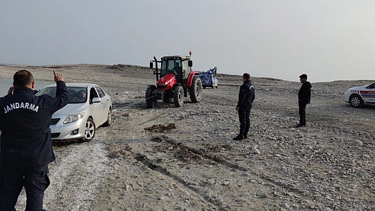 Olay, Battalgazi ilçesi Kadıçayırı Mahallesi’nde meydana geldi. Edinilen bilgilere göre, Burhan Ç. ailesiyle birlikte 34 BZ 8586 plakalı otomobille Atabey Feribot İskelesi sahil bandında ilerlerken araç çamura saplandı. Manevra kabiliyetini kaybeden aracı bulunduğu yerden çıkaramayan araç sürücüsü, bölgede devriye atan jandarma ekiplerinden yardım istedi.