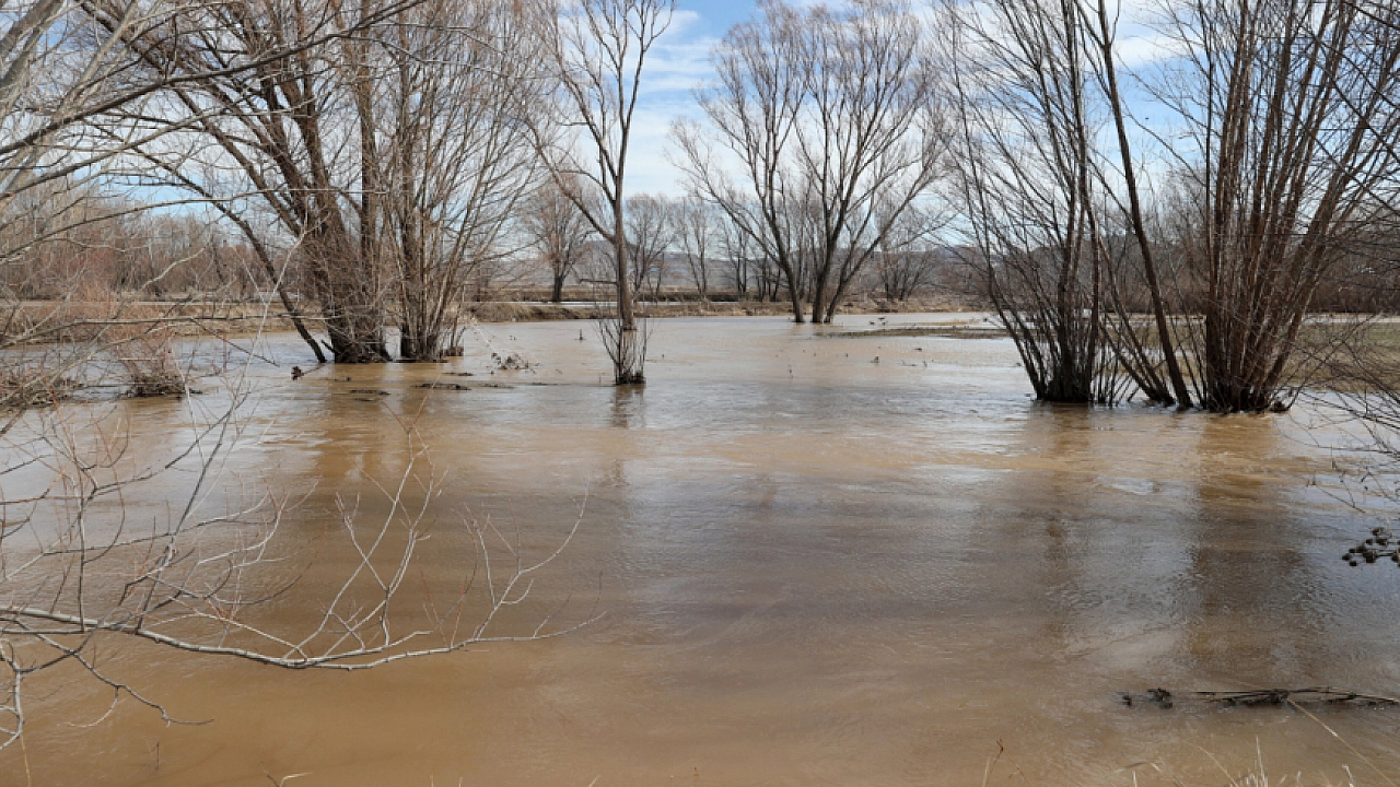 Sivas'ın Ulaş ilçesinde, sağanak ve kar erimesi nedeniyle taşan Tecer Irmağı yaklaşık 8–10 bin dönüm ekili tarım arazisini su altında bıraktı.