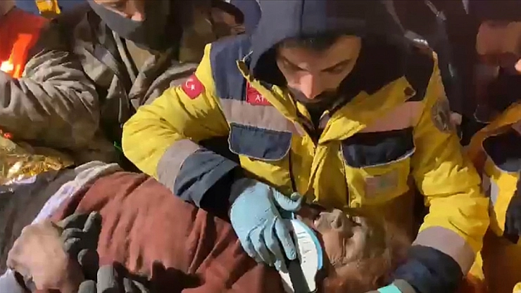 'Asrın felaketi' olarak nitelenen Kahramanmaraş merkezli depremlerde Malatya'nın Battalgazi ilçesinde enkaz altında kalan 83 yaşındaki kadına 124,5 saat sonra sağ ulaşıldı.