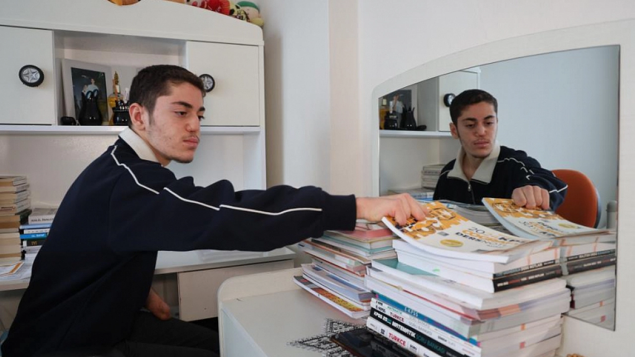Elazığ'da 18 günlükken geçirdiği kan zehirlenmesi sonucu uzuvlarını kaybeden ve eğitim hayatını başarıyla sürdürerek takdir belgesi alan 17 yaşındaki Ahmet Emre İlitaş, azmiyle örnek oluyor. İlitaş, yaşamını daha bağımsız sürdürebilmek için bir biyonik el ve ayak hayali kuruyor.