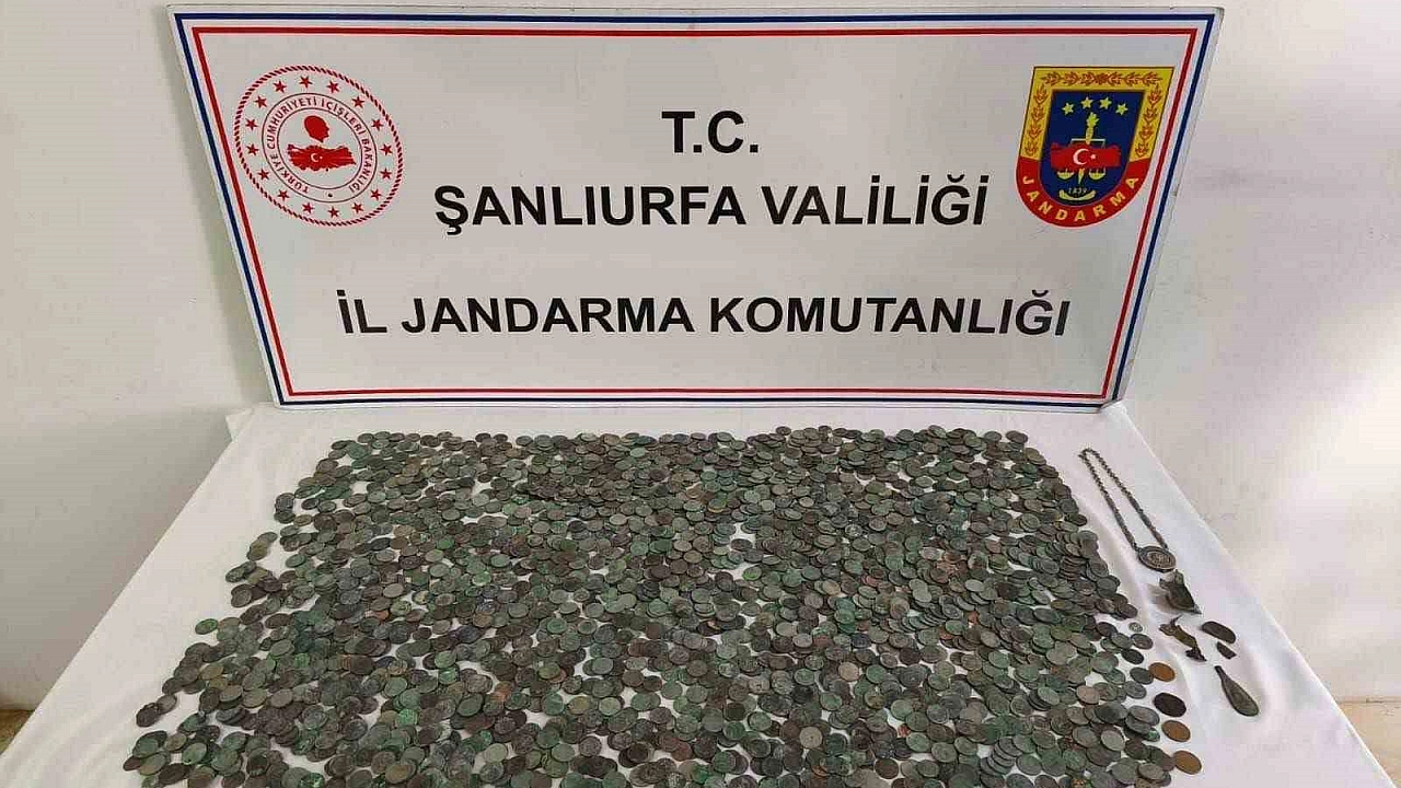 Şanlıurfa'nın Ceylanpınar ilçesinde düzenlenen operasyonda 2 bin 638 adet gümüş ve bronz sikke ile süs eşyası ele geçirildi.