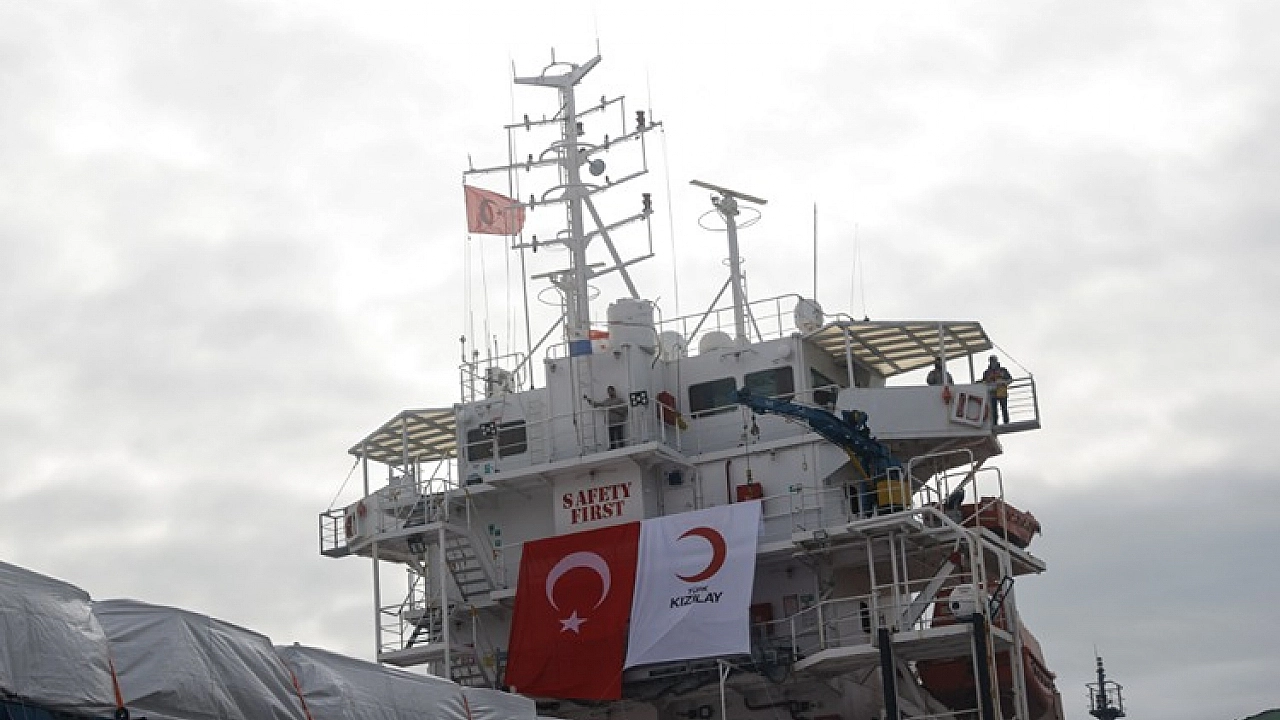 Türk Kızılayın Gazze'ye gönderilmek üzere hazırladığı, içerisinde yaklaşık 1400 ton insani yardım malzemesi bulunan 20. 'İyilik Gemisi', Mersin Uluslararası Limanı'ndan uğurlandı.