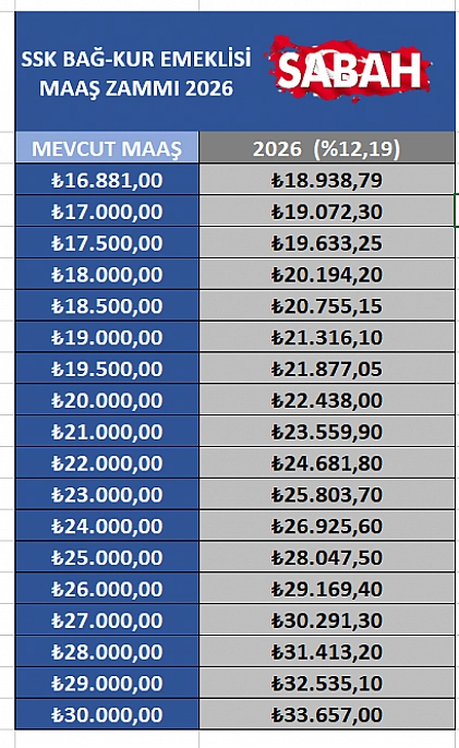 Emekli zammı, aralık ayı enflasyon verilerinin açıklanmasının ardından belli oldu. 2026 SSK, Bağ-Kur emekli maaşı ne kadar oldu? İşte emekli için yeni zam tablosu..