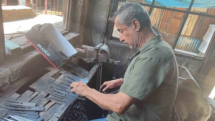 Kahramanmaraş'ta 46 yıldır çoban köpeklerine tasma yapıyor.hem mesleğini devam ettiriyor hem de geçimini sağlıyor.