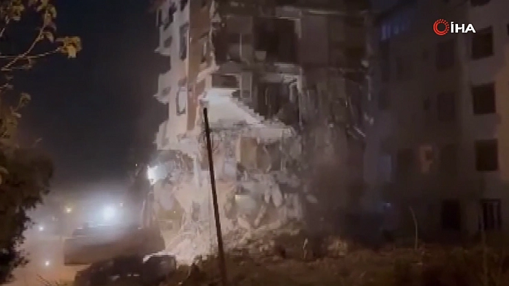 Antakya ilçesi Saraykent Mahallesi’nde akşam saatlerinde 6 katlı ağır hasarlı bir binanın iş makinasıyla yıkımı esnasında bina iş makinesinin üzerine çöktü.