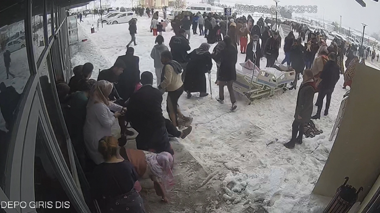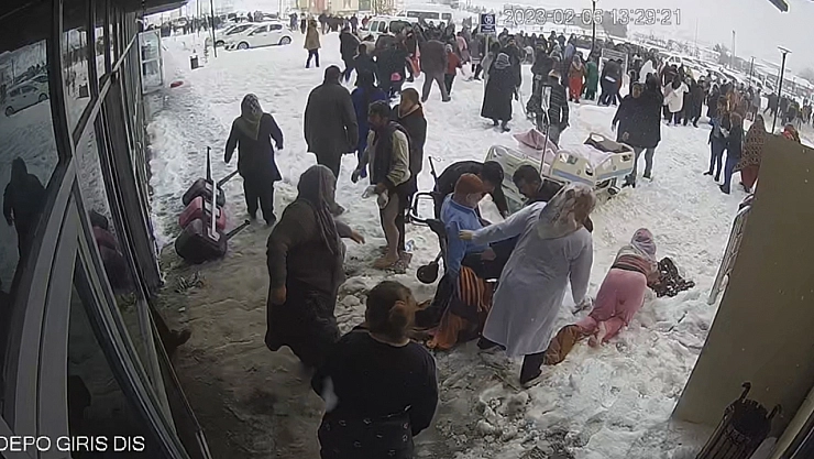 Öte yandan havanın soğuk olması nedeniyle deprem sonrası battaniye almak için tekrar hastaneye giren bazı kişilerin artçı sarsıntıya yakalandığı anlar da kayıtlara geçti.