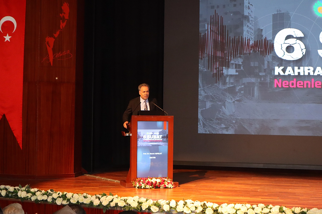 Yapı güvenliğinin bir tercih değil zorunluluk olduğuna dikkat çeken Rektör Akpolat, “Bu acılardan ders çıkarmamız gerektiğini biliyoruz ve bu anlamda da üzerimize düşenleri yerine getirmemiz gerektiğini de ifade etmek istiyorum. Ders çıkarma, ortak bir bilinç oluşturma ve daha güvenli bir gelecek inşa etme sorumluluğumuzu tekrar hatırlatmak istiyorum. Bugün düzenlediğimiz bu etkinlik tam bu sorunun bilimsel bir ifadesi olarak karşımızda duruyor. Deprem coğrafyamızın değişmeyen bir gerçeği. Artık bunu herkesin kabul etmesi gerekiyor. Ancak depremin bir felakete dönüşüp dönüşmemesi meselesi tamamen bize bağlı bir konu ve bizim hazırlık düzeyimizle ilgilidir. Artık deprem kuşağında yaşadığımızı bilmek yetmiyor. Bu gerçekle yaşamayı öğrenmek ve bununla yüzleşmek gerekiyor. Şehirlerimizi buna göre planlamalı, yapı güvenliğini bir tercih olarak değil vazgeçilmez bir zorunluluk haline getirmemiz gerekiyor. Bu anlamda şehrin tüm yöneticilerine özellikle belediyelerimize ayrı bir görev düştüğünü düşünüyorum. Afetlerin bir kader olmadığını aslında afetlerin sonuçlarının ihmalin, tedbirsizliğin ve bilimden uzaklaşmanın sonucundan kaynaklandığını bunlardan uzaklaştığımız için bu kadar yıkıma maruz kaldığımızı tekraren hatırlatmak gerekiyor, hatırlamak gerekiyor. Bu nedenle doğru planlama, güçlü denetim ve kurumsal işbirliği hayati bir öneme sahiptir. Bu noktada hepimize çok büyük görevler düşmekte. 6 Şubat depremleriyle birlikte öyle bir yıkım oldu ki adına herkes aslın felaketi olarak adını koydu. Düşünün ki 120 bin km² etkileyen 14 milyon vatandaşımızın hayatına etki eden 11 il, 124 ilçe, 7 bin köy ve mahalleyi etkileyen devasa bir alandan ve etkiden bahsediyoruz. Resmi açıklamalara göre 54 bin yakın vatandaşımız hayatını kaybetmiş. 110 bine yakın vatandaşımız ise yaralanmış ve çeşitli derecelerde sakat kalmıştır. 2 milyon aşkın vatandaşımız da göç etmek zorunda kalmıştır” dedi.