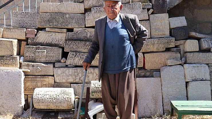 Malatya'nın Yazıhan ilçesinde yaşayan Hüseyin Çakıl, 90 yıllık yaşamı boyunca irili ufaklı yüzlerce taşı yontup şekillendirerek yazılar yazdı. Yaklaşık 60 yıldır taşlara şekil veren Çakıl, evinin dört bir tarafında sergilediği taşlara ise gözü gibi bakıyor.