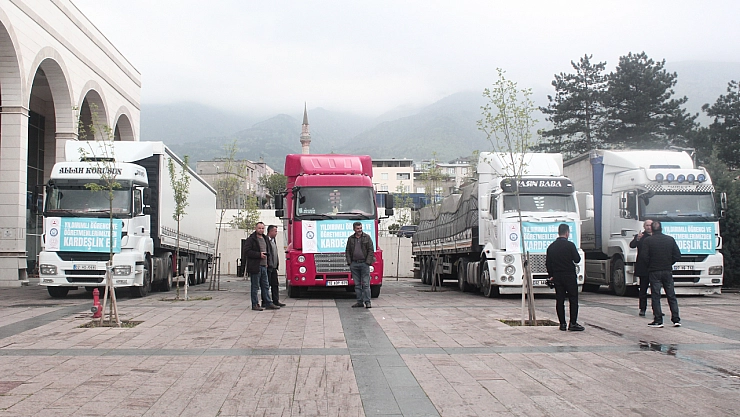 Yıldırım Belediyesi'nin deprem zedeler için hazırladığı yardım tırları, protokolün katılımıyla uğurlandı.