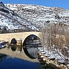 Diyarbakır'ın Çermik ilçesinde bulunan Artuklu eseri tarihi Haburman Köprüsü, ilk günkü ihtişamı ile ayakta durmaya devam ediyor. Yaklaşık 850 yıllık tarihi köprü, karla birlikte seyrine doyumsuz manzara oluşturdu.