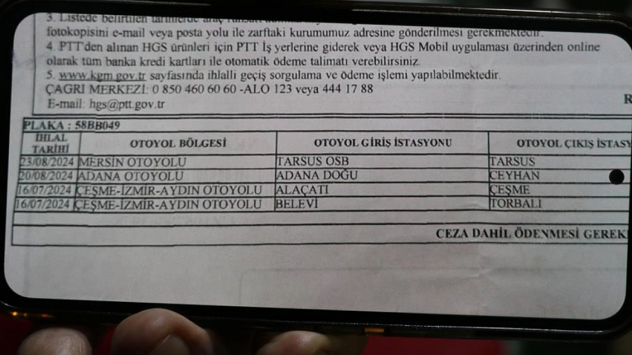 Yiğit, başına gelen hatanın yüksek meblağlardan ödeme imkanı bulunmayan kişilerinde başına gelebileceğini ifade ederek, "Bana gelen tebligatta ücretli otoyola girdiğim ama ücret ödemediğim belirtiliyor. Ben Sivas'ta ikamet etmeme rağmen İzmir, Alaçatı, Çeşme, Adana ve Pozantı ücretli geçişlerinden ücret ödemeden geçtiğim için ceza belgesi geldi. Mecburen ödemeyi yaptım, şimdide itirazımı yapacağım. 2024 yılının 7. ve 8. aylarında bu geçişlerin yapıldığı belirtilmiş. Bu tarihlerde ben Sivas'taydım. Hayretler içerisindeyim. Bu nasıl oluyor bilemiyorum. Küçük bir miktar geldi ama büyük bir miktarda gelebilirdi. Bu hatalar ödeyemeyecek gücü olanları mağdur edebilir" dedi.