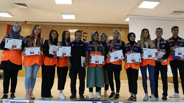 Destek AFAD gönüllüsü kimlik kartı almaya hak kazanan öğrenciler ile ilgili ise Demir, “Alınan eğitimler ve çevrim içi eğitimler sonucu öğrencilerimiz destek AFAD gönüllüsü kimlik kartı almaya hak kazanmıştır. Verilen bu eğitimler ile üniversitemiz içerisinde resmi olarak 274 öğrencimize destek AFAD gönüllüsü statüsü kazandırdık. Hedefimiz öncü olarak afetlere karşı farkındalık kazandırabilmektir” dedi.
