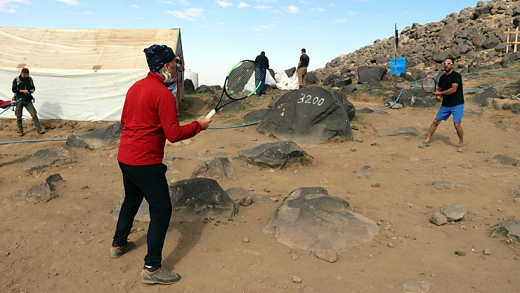 Ağrı Dağı rehberlerinden Yıldırım Seçmen de grubuyla birlikte zirveye doğru yola çıktıklarını anlatarak, "Zaman ve fırsat bulduğumuzda farklı spor branşlarında farklı etkinlikler de yapıyoruz. Tenis oynamayı çok seviyorum. Bugün de Ağrı Dağı'nda tenis oynadık." ifadelerini kullandı.