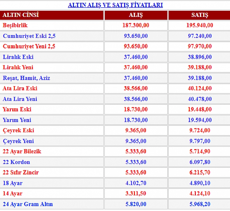 Siz de güncel çeyrek altın, yarım altın, tam altın ve cumhuriyet altını fiyatlarını anbean takip etmek için malatyanethaber.com.tr adresini ziyaret edebilirsiniz.