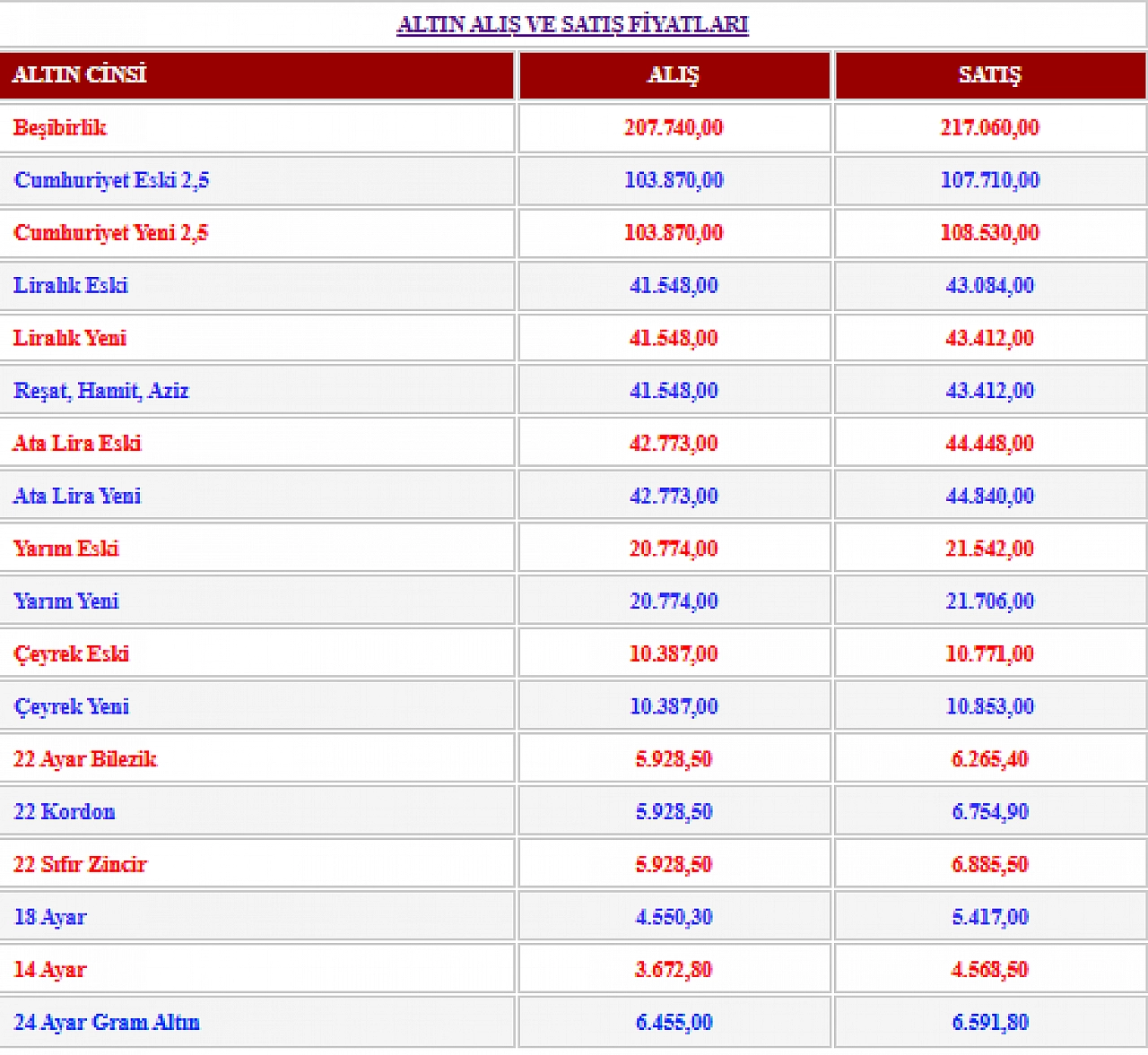 Beşibirlik altın fiyatı: 217.060,00 TL