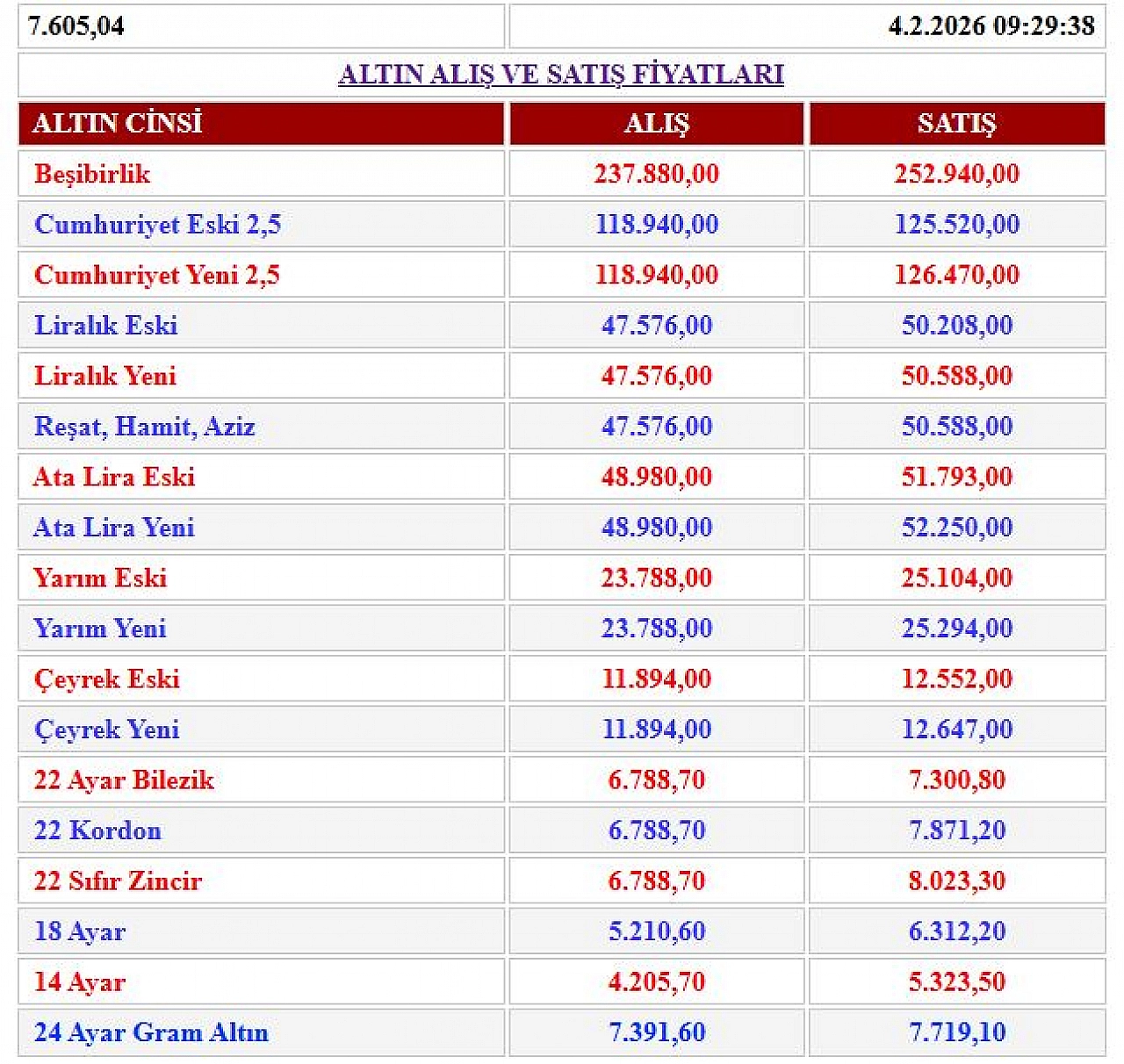 Küresel olaylar altın fiyatını etkilerken yatırımcılar merakla güncel altın fiyatlarını takip ediyor. Peki, gram altın fiyatları bugün ne kadar oldu? Çeyrek altın bugün kaç lira? İşte 4 Şubat 2026 alış-satış fiyatları...