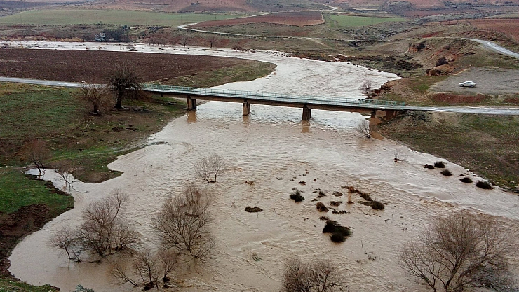 Gaziantep'in Araban ilçesinde yağan kar ve sağanak yağışlar nedeniyle Karasu ve Pınar çayı seviyesi yükseldi.