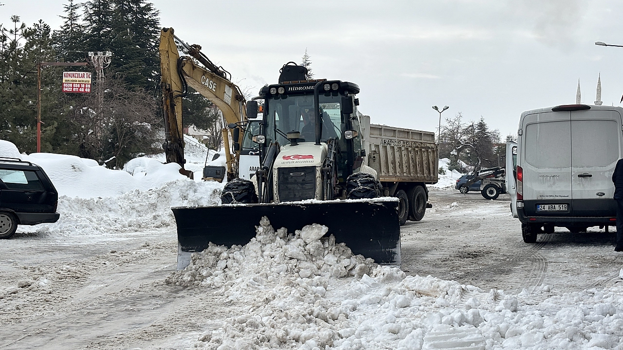 Arapgir'de etkili olan yoğun kar yağışının ardından Arapgir Belediyesi Fen İşleri Müdürlüğü ekipleri, sanayi sitesinde biriken karları temizlemek için çalışmalarını sürdürüyor.