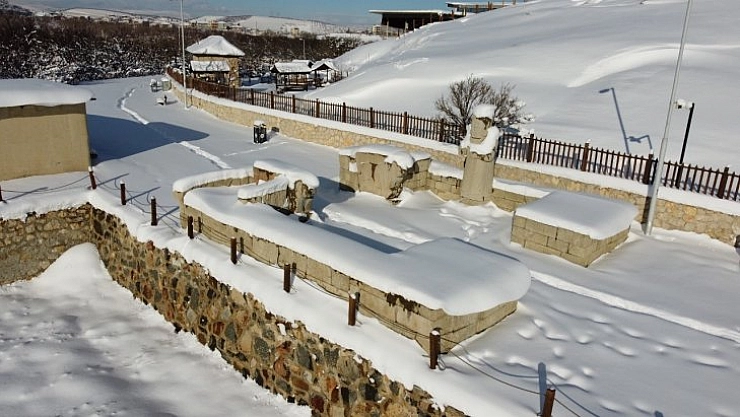 Malatya'da etkili olan kar yağışının ardından Anadolu'nun en eski şehir devletinin kurulduğu ve UNESCO Dünya Kültür Mirası Listesi'nde yer alan Battalgazi'deki Arslantepe Höyüğü'nde kartpostallık görüntüler oluştu.