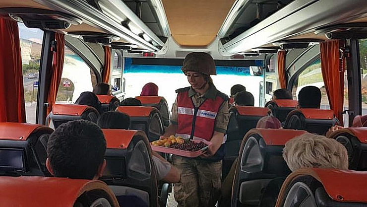 Elazığ İl Jandarma Komutanlığı ekipleri, yol kontrolü uygulamasında kayısı ve kiraz ikramında bulundu.