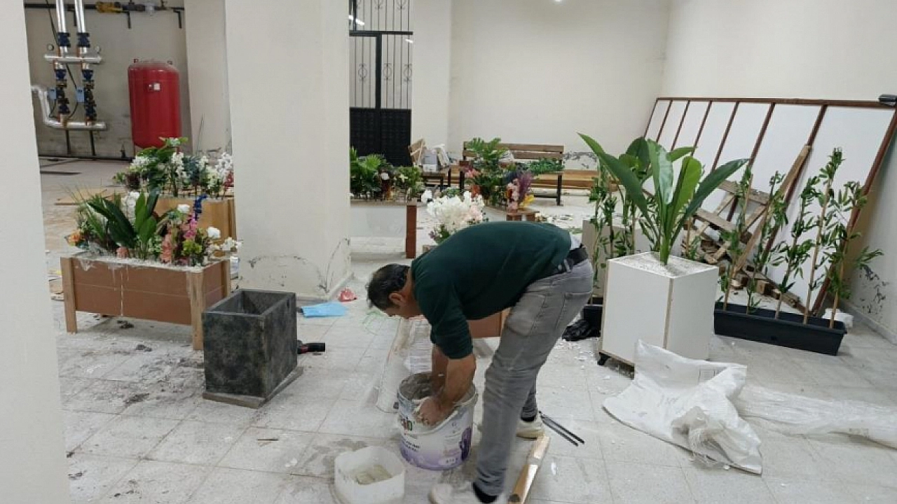Adıyaman'ın Samsat Safvan Bin Muattal Anadolu İmam Hatip Lisesi'nde görevli temizlik elemanı, okuldaki boş zamanlarında atık malzemelerle okula katkı sunuyor.