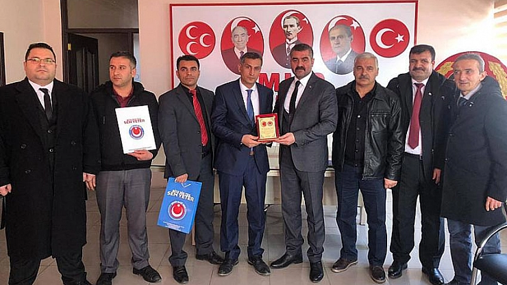 Şehit Gazi Yakınları ve Vatanseverler Kamu Görevlileri Sendikası Malatya Şube Başkanı Ahmet Adıyaman, MHP Malatya İl Başkanı Ramazan Bülent Avşar'ı ziyaret ederek plaket takdim etti.