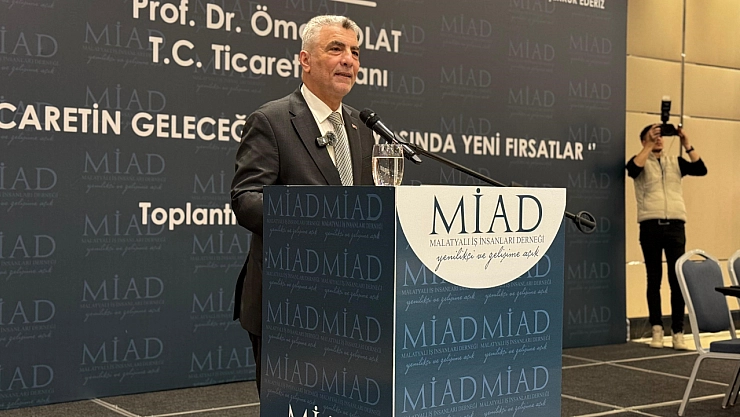 Ticaret Bakanı Ömer Bolat, Malatyalı İş İnsanları Derneği'nin (MİAD) düzenlenen geleneksel aylık toplantısında, "Ülkemizde Ticaretin Geleceği ve İş Dünyasında Yeni Fırsatlar" başlıklı konuşma gerçekleştirdi. Konuşmasına Malatya'nın tarihi ve kültürel özelliklerinden ve MİAD'ın kuruluşundan bugüne kadar yaptığı faaliyetlerden bahsederek başlayan Bolat, Kahramanmaraş merkezli depremlerin yol açtığı yıkımı ve Malatya'ya etkilerini anlattı. Bölgenin yeniden inşasının köy evleri, konutlar, iş yerleri, hastaneler, okullar, altyapı ve üstyapı faaliyetleriyle devam ettiğini ve Türkiye'nin dünyanın en büyük şantiyesi olduğunu dile getiren Bolat, "Bunu görmemek veya bunu görüp de inkar etmek gerçekten başka bir şey. Ama Türkiye bunu başardı. Bir iki senelik bir faaliyet kaldı. Dünyanın depremlerden en çok etkilenen ülkesi Japonya'dır. Japon yetkililerin bile hayranlıkla takdir ettiği bir gerçektir bu" dedi.