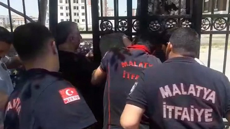 Battalgazi ilçesinde başı demir kapı korkuluklarına sıkışan çocuk, itfaiye ekiplerince kurtarıldı.