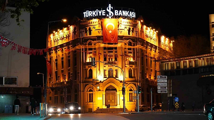 Başkentte kırmızı beyaza bürünen binaların oluşturduğu görsel şölen havadan görüntülendi.