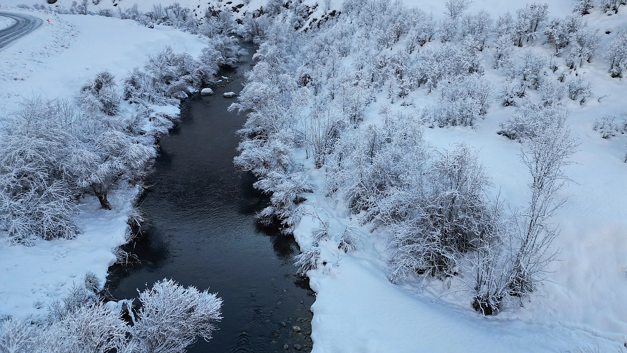 Şırnak'ın Beytüşşebap ilçesinden geçen Yeşilöz deresi çevresinde kar yağışı sonrası görsel şölen oluştu. Mağara, dere yatağı ve ağaçların beyazlar içinde kaldığı bölgeler göz kamaştırdı. Beyazın güzelliğini yansıdığı görüntüler dronla kaydedildi.