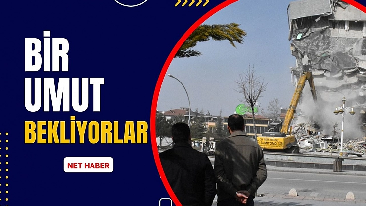 Apartmanlarının yıkımını izleyen depremzedeler, hatırası olan eşyalarını kurtarma umuduyla bekliyor.