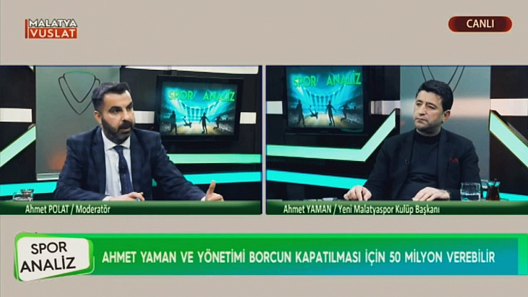 Yeni Malatyaspor kulüp başkanı Ahmet Yaman, Vuslat TV’de yayınlanan Spor Analiz programında Ahmet Polat’ın sorularını cevaplayarak çarpıcı açıklamalarda bulundu.