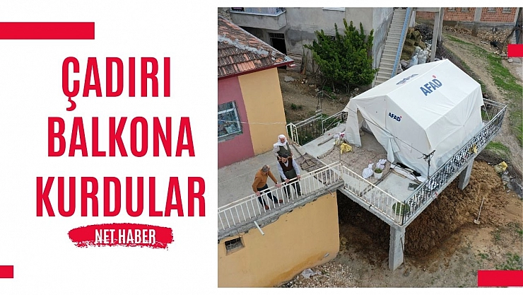 Depremlerde ahırları ağır, evleri ise az hasar alan Karacan çifti, Afet ve Acil Durum Yönetimi Başkanlığınca (AFAD) verilen çadırı, yakınlarının da yardımıyla iki yıl önce yaptıkları ve sadece dört kolonu bulunan tek katlı yapının üstüne yerleştirdi.