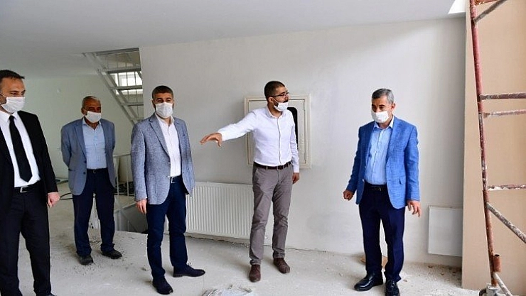 Yeşilyurt Belediye Başkanı Mehmet Çınar, AK Parti Yeşilyurt İlçe Başkanı Muhammed Emin Yalçınkaya ile birlikte, Çavuşoğlu Mahallesinde yapımı devam eden iki katlı Millet Kıraathanesinde incelemelerde bulundu.