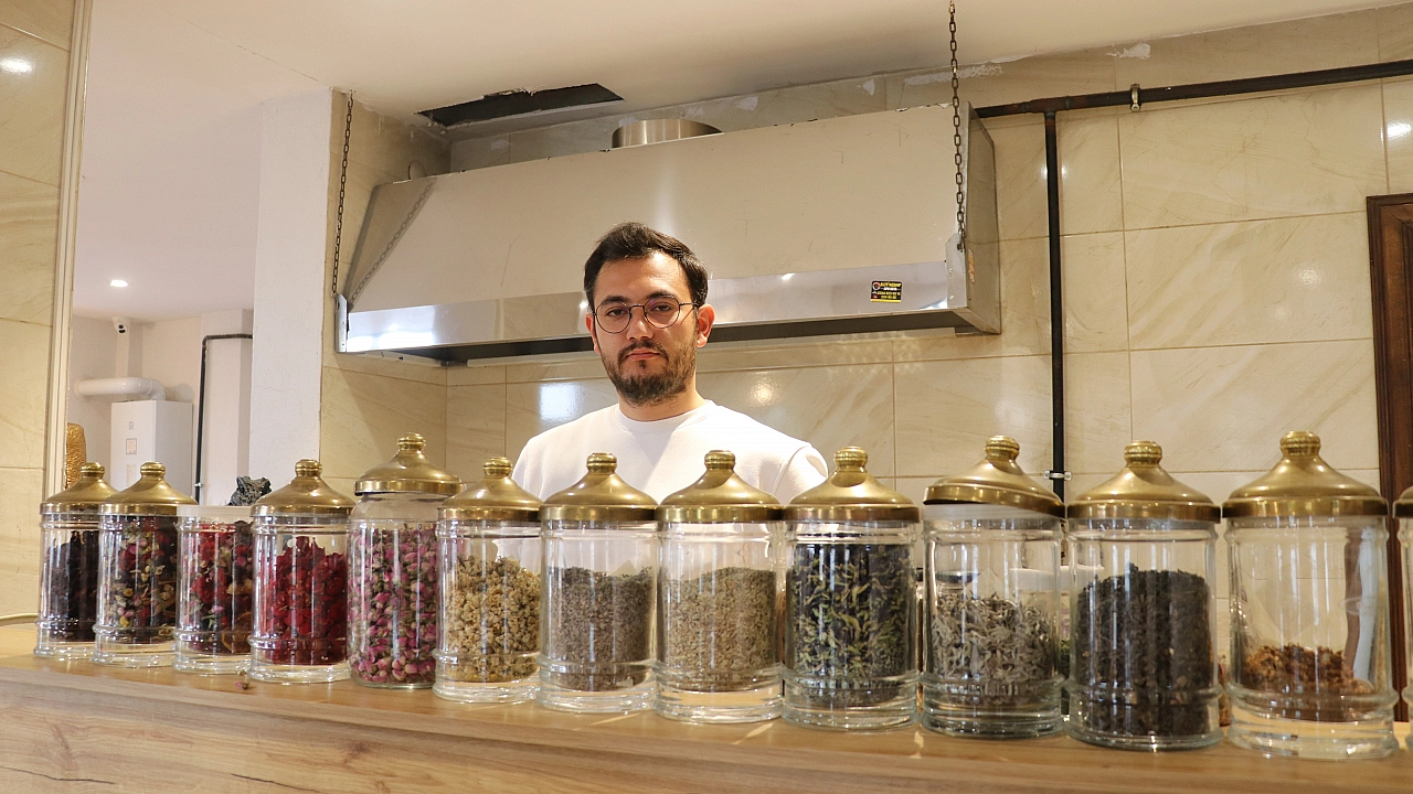 Sivas'ta bir kafede 50 farklı bitki çayı, müşteriler ve işletmecinin ortak kararıyla verilen ilginç isimleri ve renkleriyle yoğun ilgi görüyor.