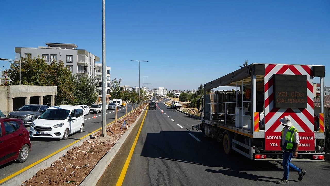Adıyaman Belediyesi, 3. Çevre Yolu'nda yol çizgisi ve uyarı tabelası çalışmaları gerçekleştirerek trafik güvenliğini ve akışını güçlendiriyor.