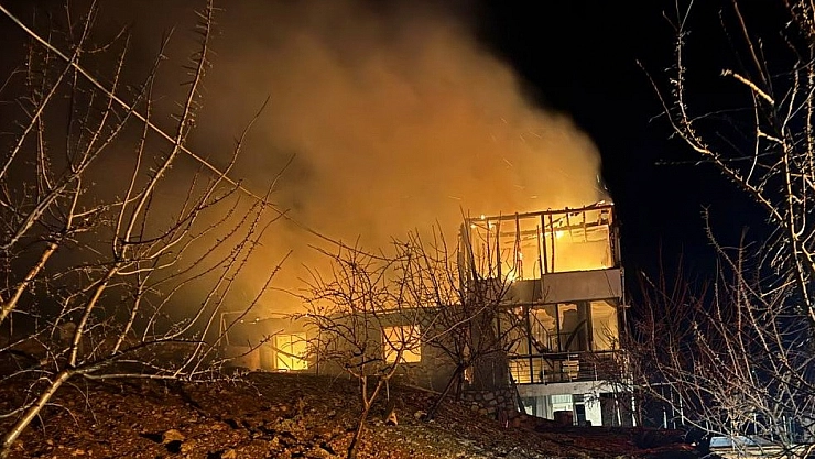 Adıyaman'ın Besni ilçesinde bir evde çıkan yangın, şiddetli rüzgarın da etkisiyle büyüyerek evi küle çevirdi.