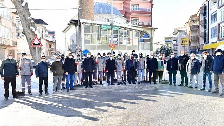 Yeşilyurt Belediyesi Temizlik İşleri Müdürlüğü personellerine çalışmalarında başarılar dileyen Çınar, esnafları da ziyaret ederek talep ve önerilerini dinledi.
