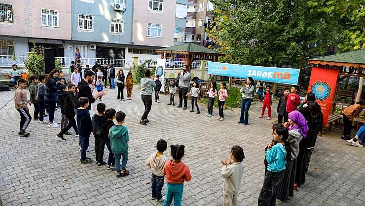 Ma Müzik Center paydaşlığıyla gerçekleştirilen atölyelerde eğitmenler, erbaneler ve çocukların ilgisini çekecek şarkılar eşliğinde mahalleleri gezerek çocukları topladı. Eğitmenler, çocuklarla birlikte şarkılar söyleyip, enstrüman çalarak ve resim yaparak atölye çalışması yaptı. Çember oluşturan çocuklar, doyasıya eğlenerek neşeli bir gün geçirdi.