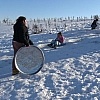 Naylon, leğen ve tepsilerle kayak keyfi yaptılar