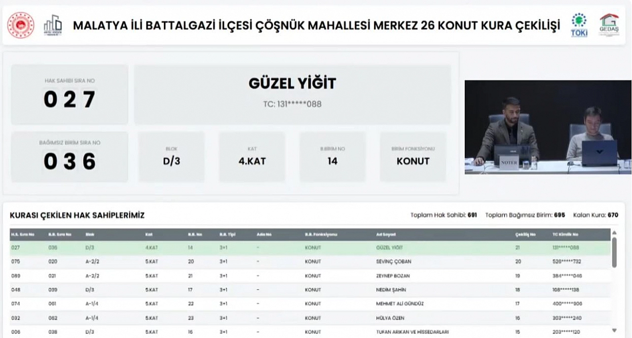 6 Şubat depremlerinin ardından Malatya'nın birçok noktasında kalıcı konut ve iş yeri projeleri tamamlandı. Battalgazi ilçesinde Çöşnük Mahallesi'nde yer alan 691 konut için gerçekleştirilen kura çekimiyle hak sahipleri belli oldu. İşte detaylar…