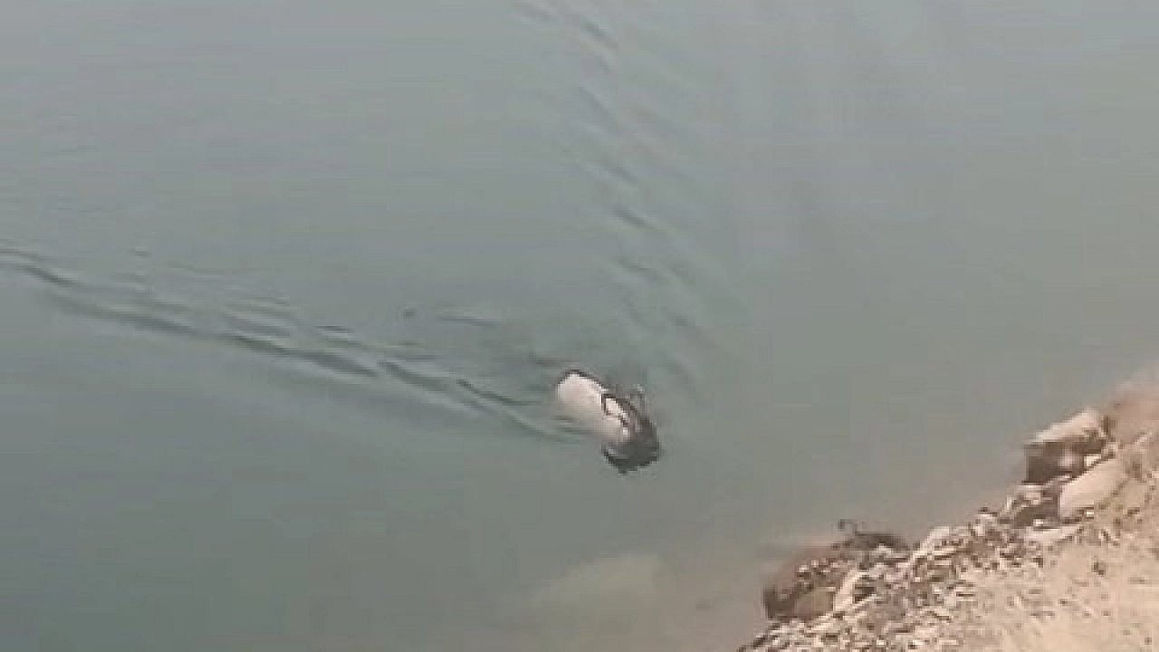 Elazığ'ın Karakoçan ilçesinde sarp kayalıklara tırmanma özellikleri ile tanınan koruma altındaki dağ keçisi, bu sefer Özlüce Baraj Gölü'nde yüzerken görüldü.