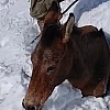Dağda karda mahsur kalan katırlar kurtarıldı
