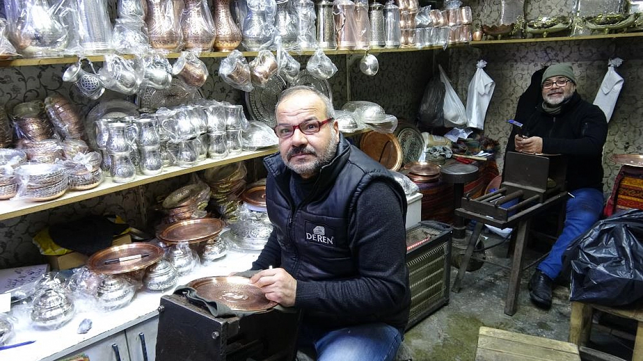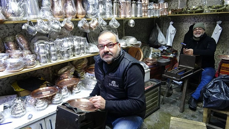 Gaziantep'te çocukken birlikte işe başlayan ve 44 yıldır da aynı dükkanda beraber mesai yapan Mesut Keklik ile yeğeni Mehmet Sakça, bakır işlemeciliği mesleğinin devam etmesi için mücadele veriyor.