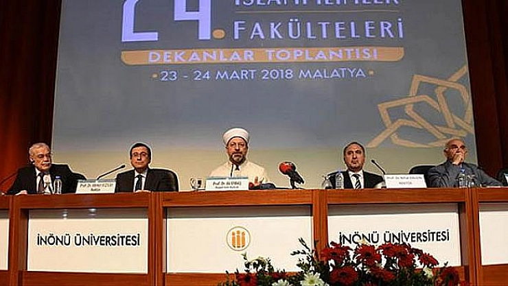 Diyanet İşleri Başkanı Prof. Dr. Ali Erbaş, İnönü Üniversitesi Turgut Özal Kongre Merkezi'nde düzenlenen 24. İlahiyat ve İslami İlimler Fakülteleri Dekanları Toplantısı'nın değerlendirme ve sonuç bildirgesinin okunmasından önce yaptığı konuşmada, başkanlık, ilahiyat ve İslami ilimler fakülteleri ve Milli Eğitim Bakanlığı Din Öğretimi Genel Müdürlüğü ile din dersi öğretmenlerinin iş birliğiyle, toplantının son yıllardaki en mümtaz örneğini sergilediklerini söyledi.