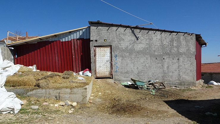 Başpınar Mahallesi Dikendede mevkiinde yıllardır büyükbaş hayvan yetiştiriciliği yaparak geçimini sağlayan ve depremlerde evi ve ağılları yıkılan Ahmet Menge, eşi Ayşegül Menge ve yakınları ise her şeye rağmen üretime devam ediyor.