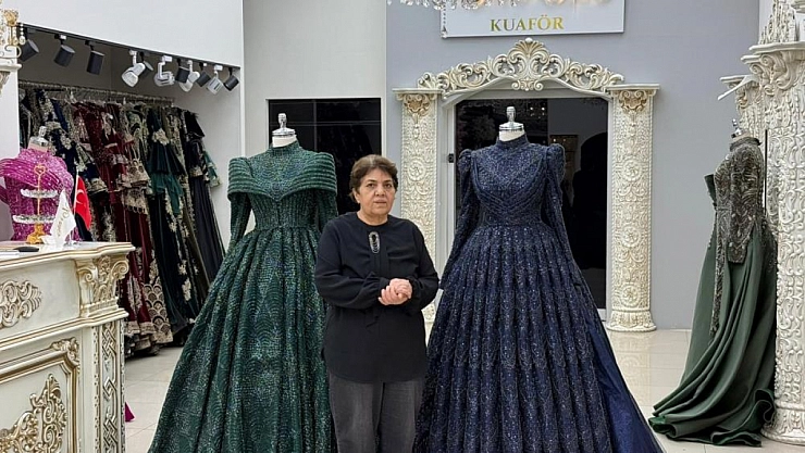 Malatya'da 6 Şubat depremlerinde iki iş yeri yıkılan 63 yaşındaki Azize Toy, tüm zorluklara rağmen gelinlik dikim işine devam ediyor. 27 yıldır sektörde yer alan Toy, bugün altı kadına istihdam sağlıyor.