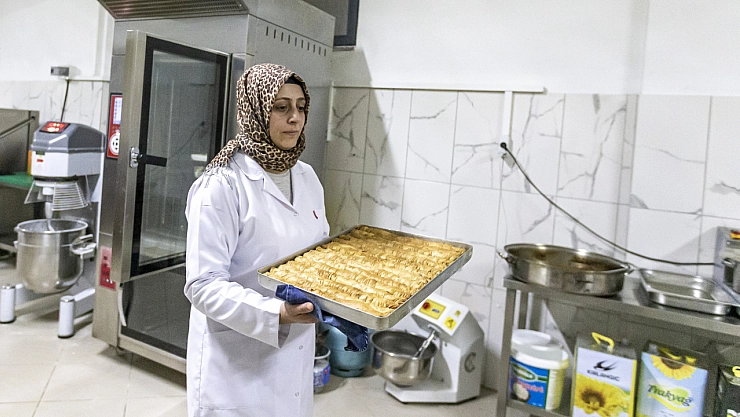 Kahramanmaraş merkezli 6 Şubat'taki depremlerin yıkıma neden olduğu Malatya'da, depremzede kadınlar kooperatif çatısı altında bayram için tatlı siparişlerini yetiştirmeye çalışıyor.