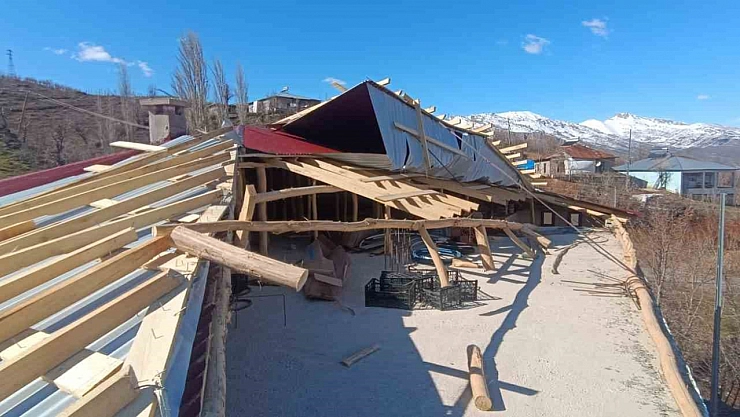 Hakkari'nin Derecik ilçesinde etkili olan kuvvetli fırtına nedeniyle bir ev ve ahırın çatısı uçtu.