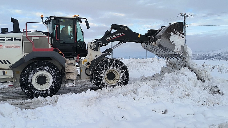 Kardan dolayı kapanan yolları ise ekipler, iş makineleri yardımıyla açmaya devam ediyor.